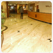 Во еден исклучително кратотк рок во фоајето на Хотелот “Holiday Inn” беше комплетно демонтиран стариот мермерен под и старата цементна кошулка. Пред поставување на новиот под се изведе нова цементна кошулка за нивелирање и припрема за новиот мермерен под, истиот се редеше по претходно пратена шема од добавувачот на затворена фуга за да добиеме една целина и уникатен изглед на подот.